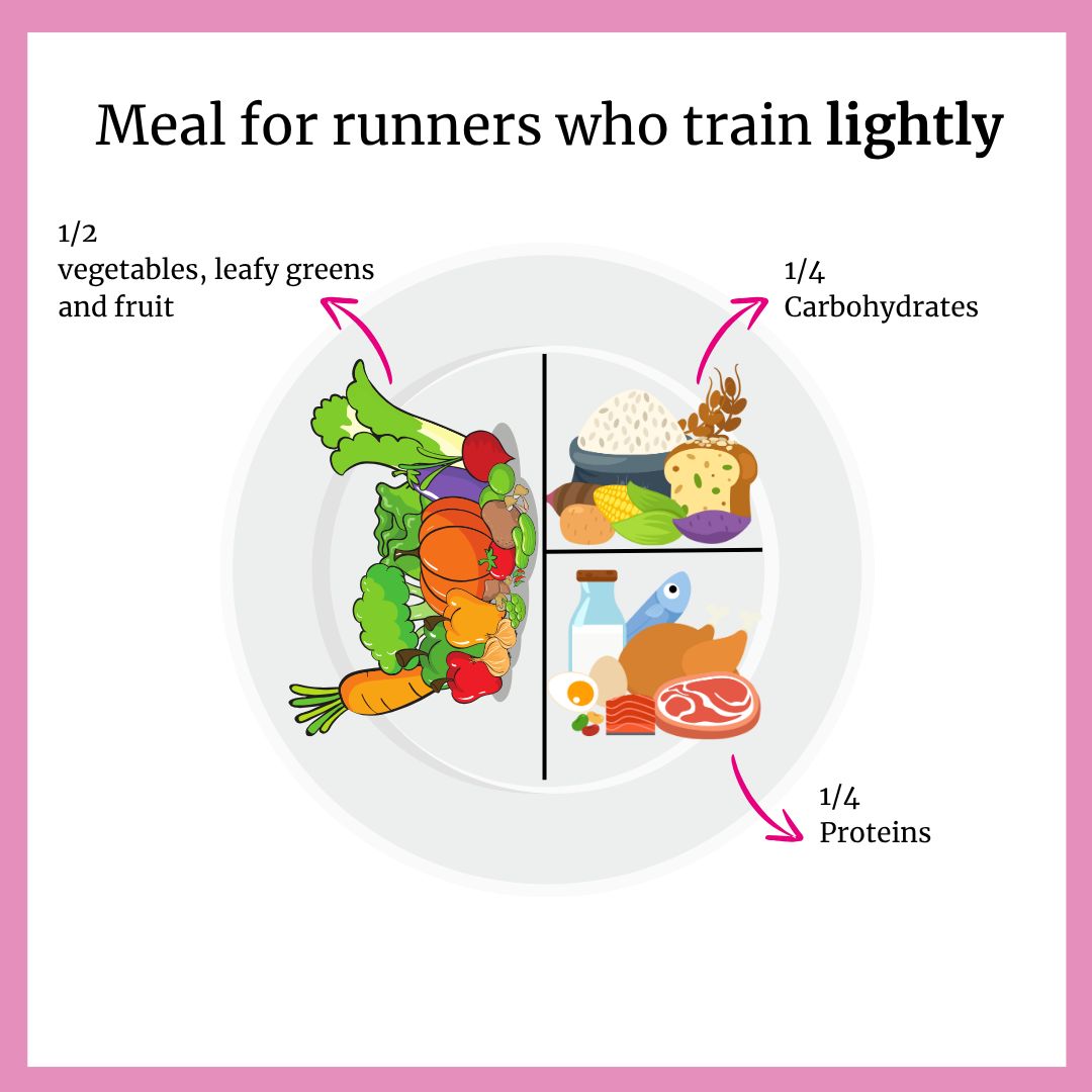 I want to show you what a meal of a runner who trains lightly, moderately, and intensely should look like: