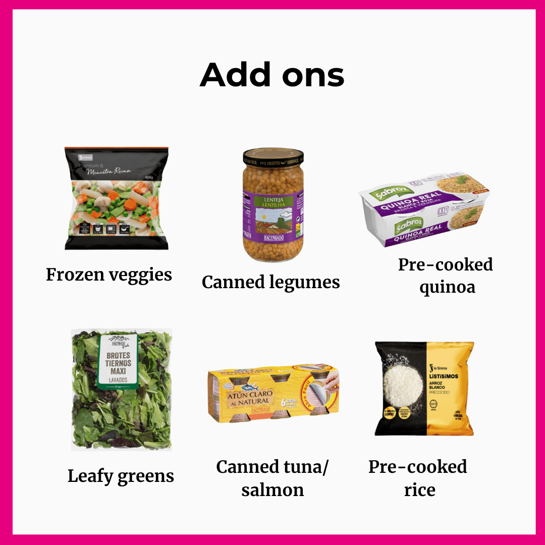 Remember that you can also store-bought items to help tailor them to your protein/carb needs or to add plant diversity.